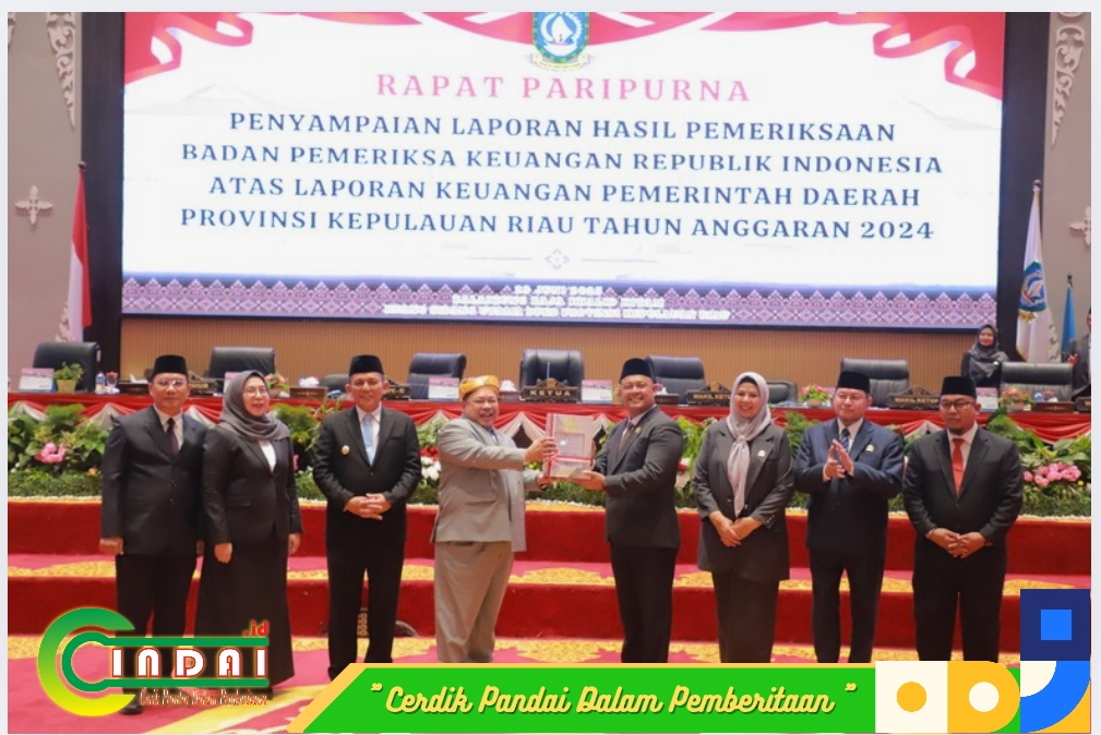 Sebagaimana Agenda rapat Paripurna hari ini, secara resmi dalam rapat Paripurna ini, akan dilaksanakan penandatanganan Berita Acara dan Penyampaian Laporan hasil Pemeriksaan Badan Pemeriksa Keuangan Republik Indonesia atas Laporan Keuangan Pemerintah Provinsi Kepulauan Riau Tahun Anggaran 2024, dari Badan Pemeriksa Keuangan Republik Indonesia kepada Dewan Perwakilan Rakyat Daerah Provinsi Kepulauan Riau dan Kepada Gubenur Kepulauan Riau.