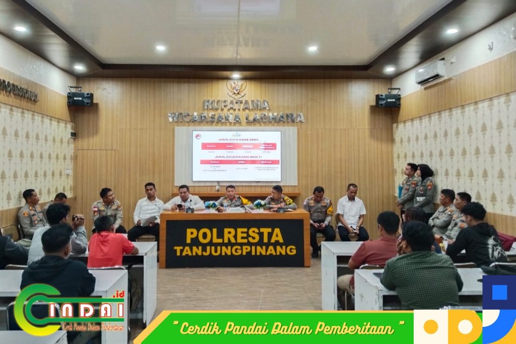 Tanjungpinang (Cindai.id) _ Kapolresta Tanjungpinang, Kombes Pol Hamam Wahyudi, S.H., S.I.K., M.H., memimpin Konferensi Pers Rilis Akhir Tahun 2025 di Rupatama Polresta Tanjungpinang, Senin (29/12/2025).