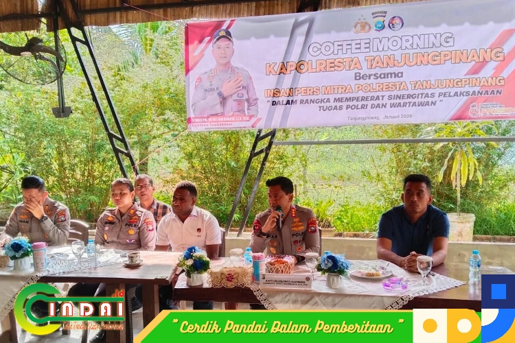 Tanjungpinang (Cindai.id) _ Coffe Morning Kapolresta Tanjungpinang bersama insan pers dengan mengusung tema “Mempererat Sinergitas Pelaksanaan Tugas Polri dan Wartawan” di kedai kopi kita, Jl. W.R. Supratman, Kota Tanjungpinang, Kepulauan Riau pada Selasa (20/01/2026).