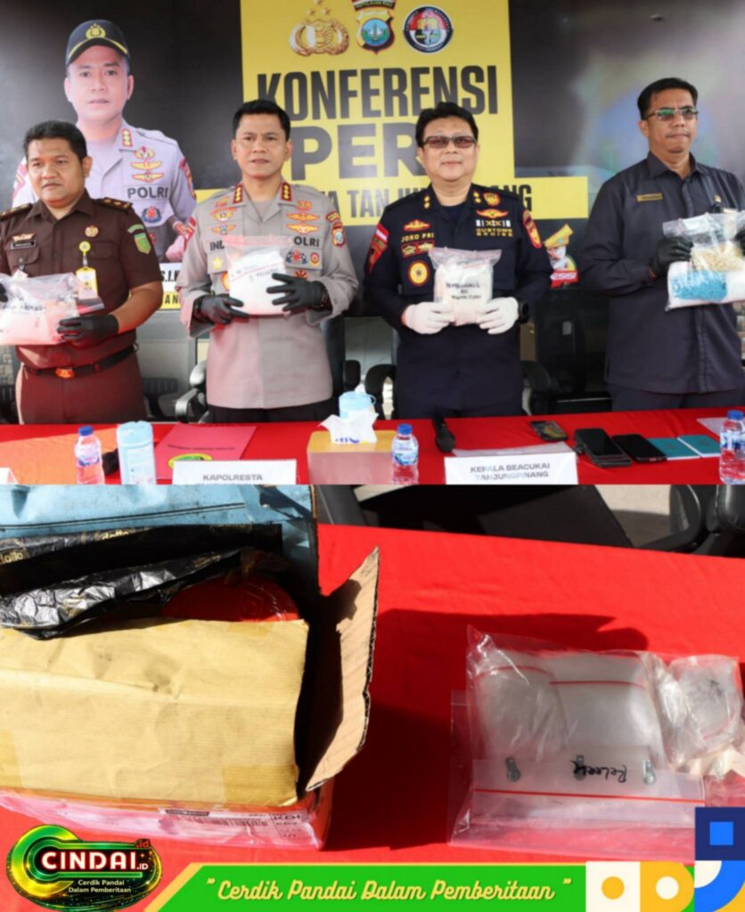 “Polresta Tanjungpinang menegaskan akan terus meningkatkan sinergitas dan kolaborasi dengan Bea dan Cukai serta instansi terkait dalam memberantas peredaran narkotika, khususnya jaringan internasional yang masuk melalui jalur pelabuhan di wilayah Kota Tanjungpinang”, jelas Kapolresta Tanjungpinang Kombes Pol. Indra Ranu Dikarta, S.I.K., M.Si., (Mona)